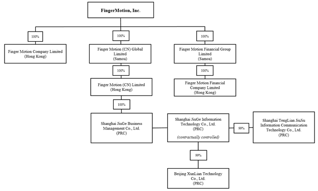 Unless the context otherwise requires, in this prospectus: (i) the terms “we”, “us”, “our”, “Company”, “FingerMotion” and “our business” refer to FingerMotion, Inc.; (ii) “SEC” refers to the Securities and Exchange Commission; (iii) “Securities Act” refers to the United States Securities Act of 1933, as amended; (iv) “Exchange Act” refers to the United States Securities Exchange Act of 1934, as amended; and (v) all dollar amounts refer to United States dollars unless otherwise indicated.